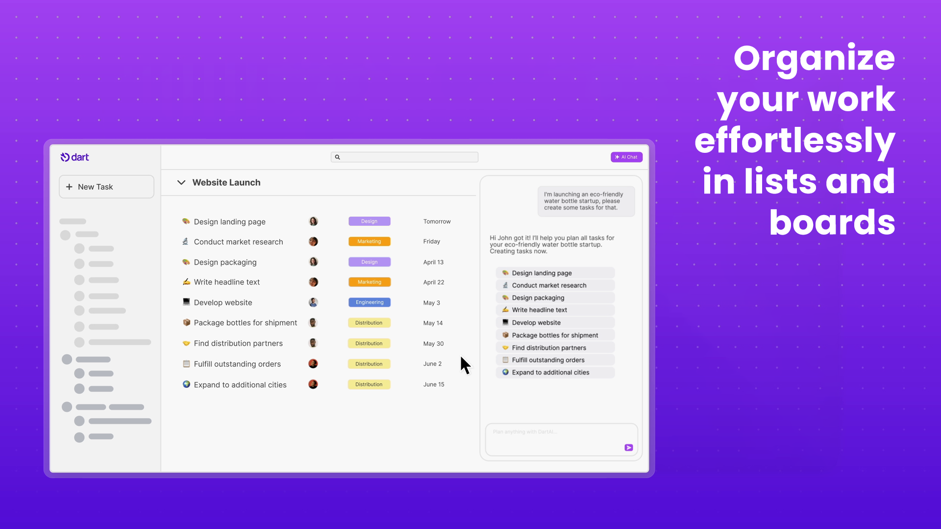 Product Hunt 日榜 | 2025-09-21 | Dart现已将AI聊天与智能代理融合,打造出独具一格的项目管理工具。只需与AI对话,即可轻松完成项目 brainstorming、规划与进度追踪。您还能部署专业化甚至定制化的智能代理,让它们高效执行任何已规划的工作任务。