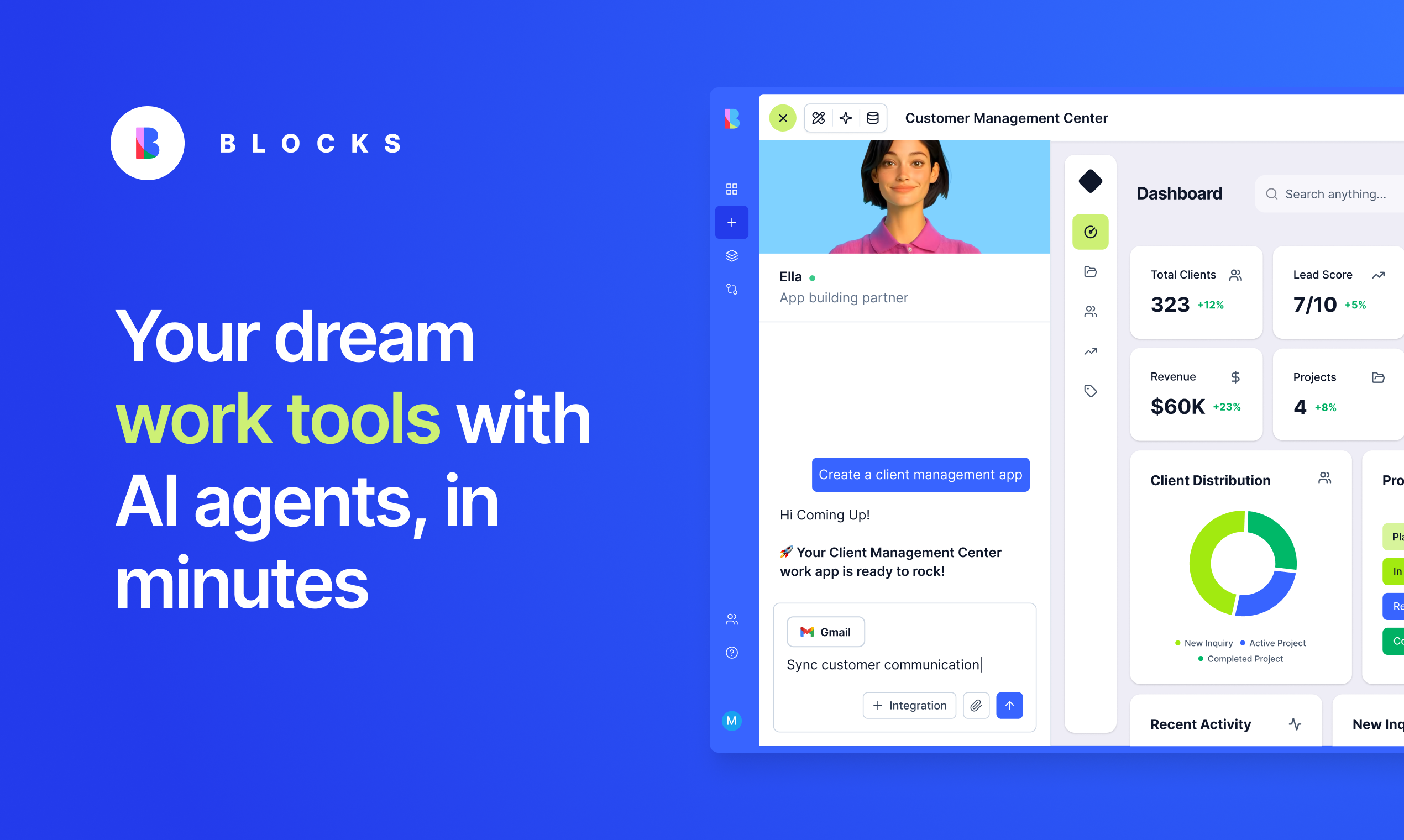 Product Hunt 日榜 | 2025-09-16 | 借助Blocks,任何人都能在几分钟内构建智能工作应用和AI智能体。它们不仅能管理工作流程,更能切实推进任务完成。我们的AI构建助手Ella将自然语言转化为应用与智能体,将应用构建与智能体开发双平台合二为一,打造出功能强大的统一工作平台。